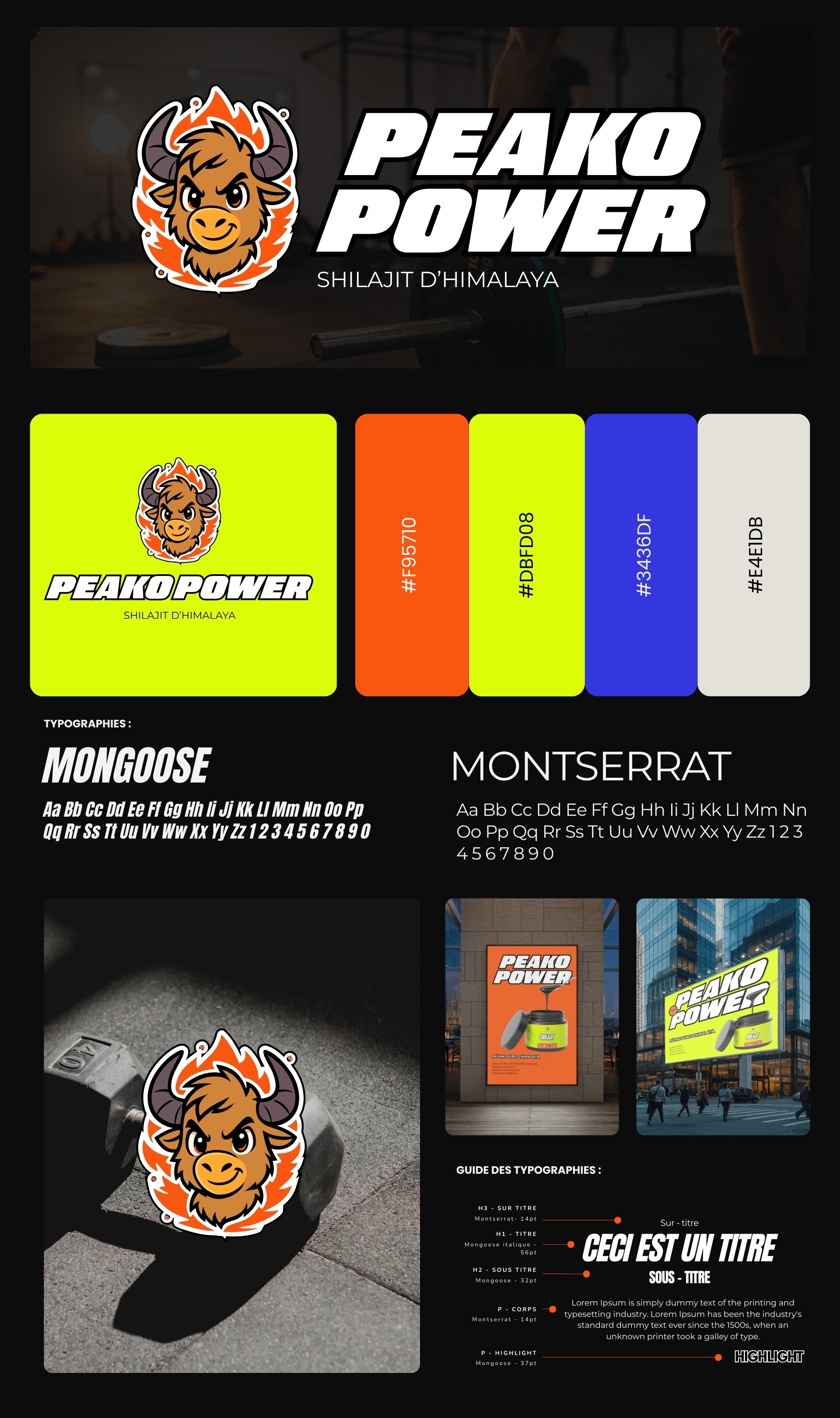 Le travail de recherche a exploré l’univers de la haute performance et de la pureté minérale, en adéquation avec l'origine sauvage du Shilajit. L’objectif était de briser les codes traditionnels des compléments alimentaires "bien-être" pour adopter une identité plus dynamique et premium.